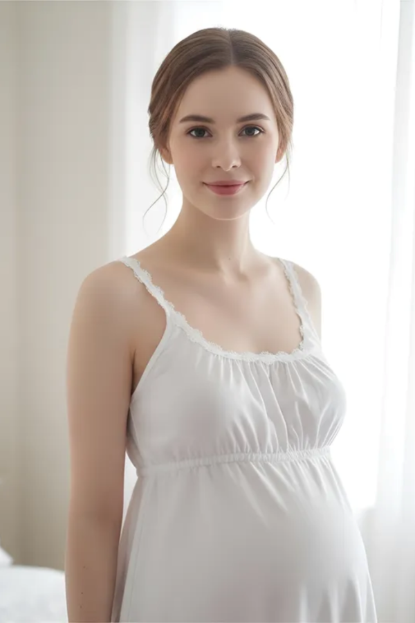 Su tela de algodón peinado es suave y confortable, ideal para los cambios del cuerpo durante el embarazo y la lactancia.